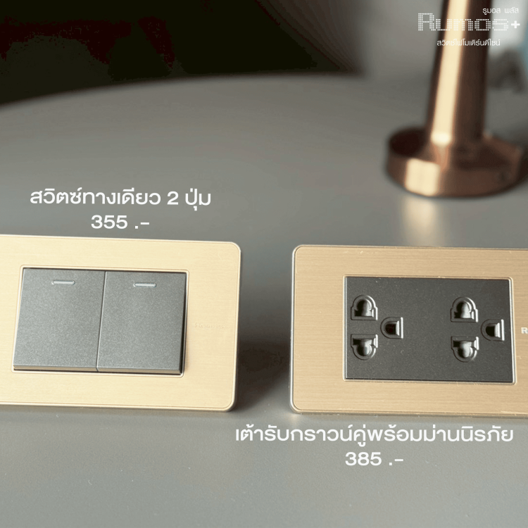 สวิตช์ไฟฟ้าแบบ 1.5G(ปุ่มกลาง)ทางเดียว+1.5G(ปุ่มกลาง)สองทาง พร้อมกรอบอะคลิลิคสีเทา