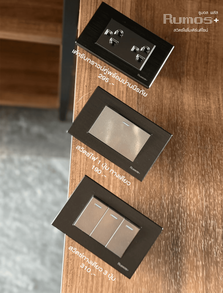 สวิตช์ไฟฟ้าแบบ 3G(ปุ่มเล็ก) สองทาง พร้อมกรอบอะคลิลิคสีเทา