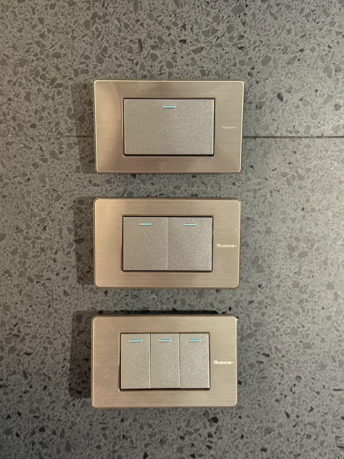 สวิตช์ไฟฟ้าแบบ 1.5G(ปุ่มกลาง) ทางเดียว พร้อมกรอบสีโรสโกลด์ ::