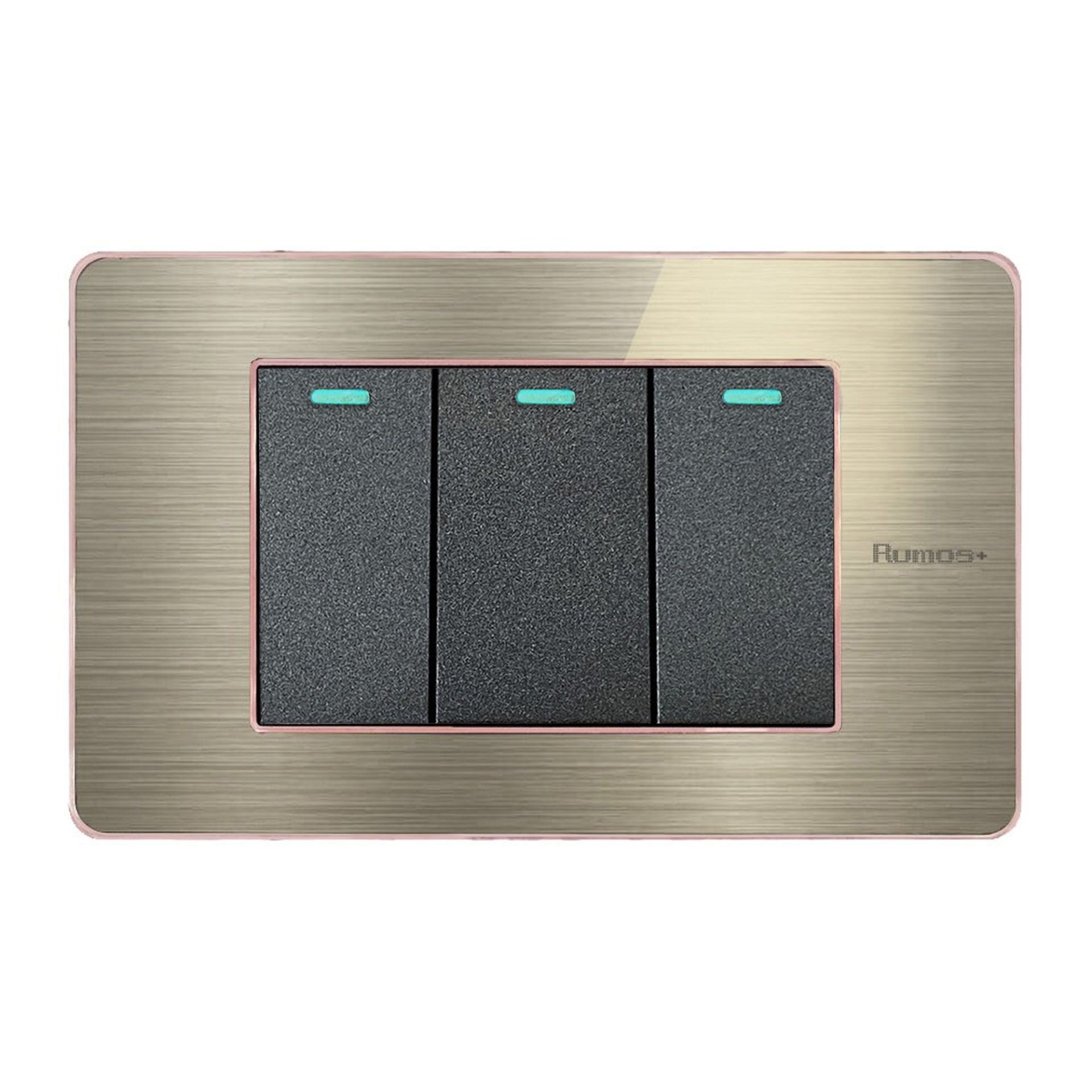 สวิตช์ไฟฟ้าแบบ 3G(ปุ่มเล็ก) สองทาง พร้อมกรอบสีโรสโกลด์