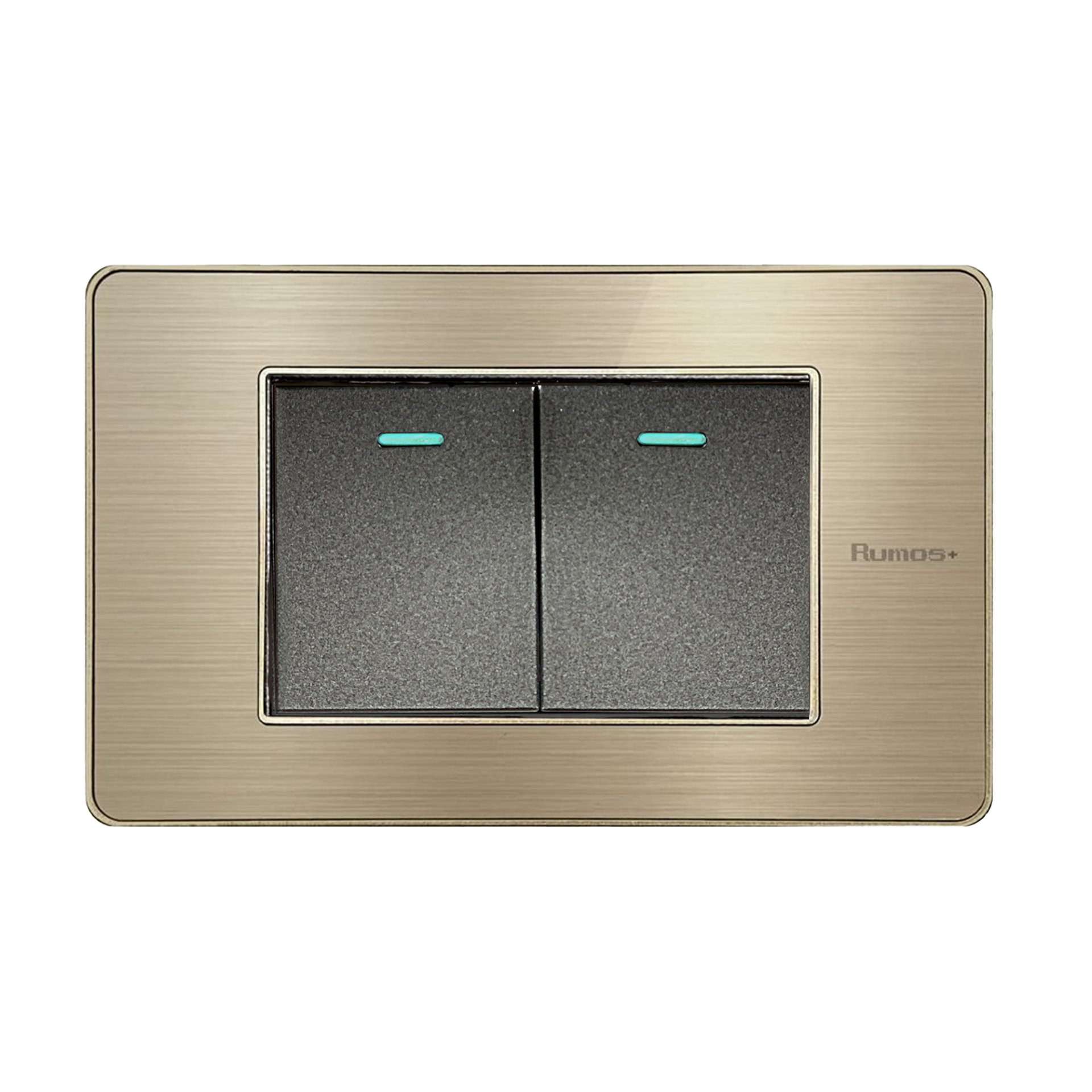 รายละเอียดสินค้าสวิตช์ไฟฟ้าแบบ 1.5G(ปุ่มกลาง) สองทาง พร้อมกรอบสีทอง