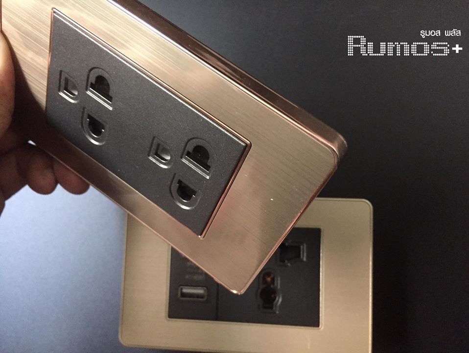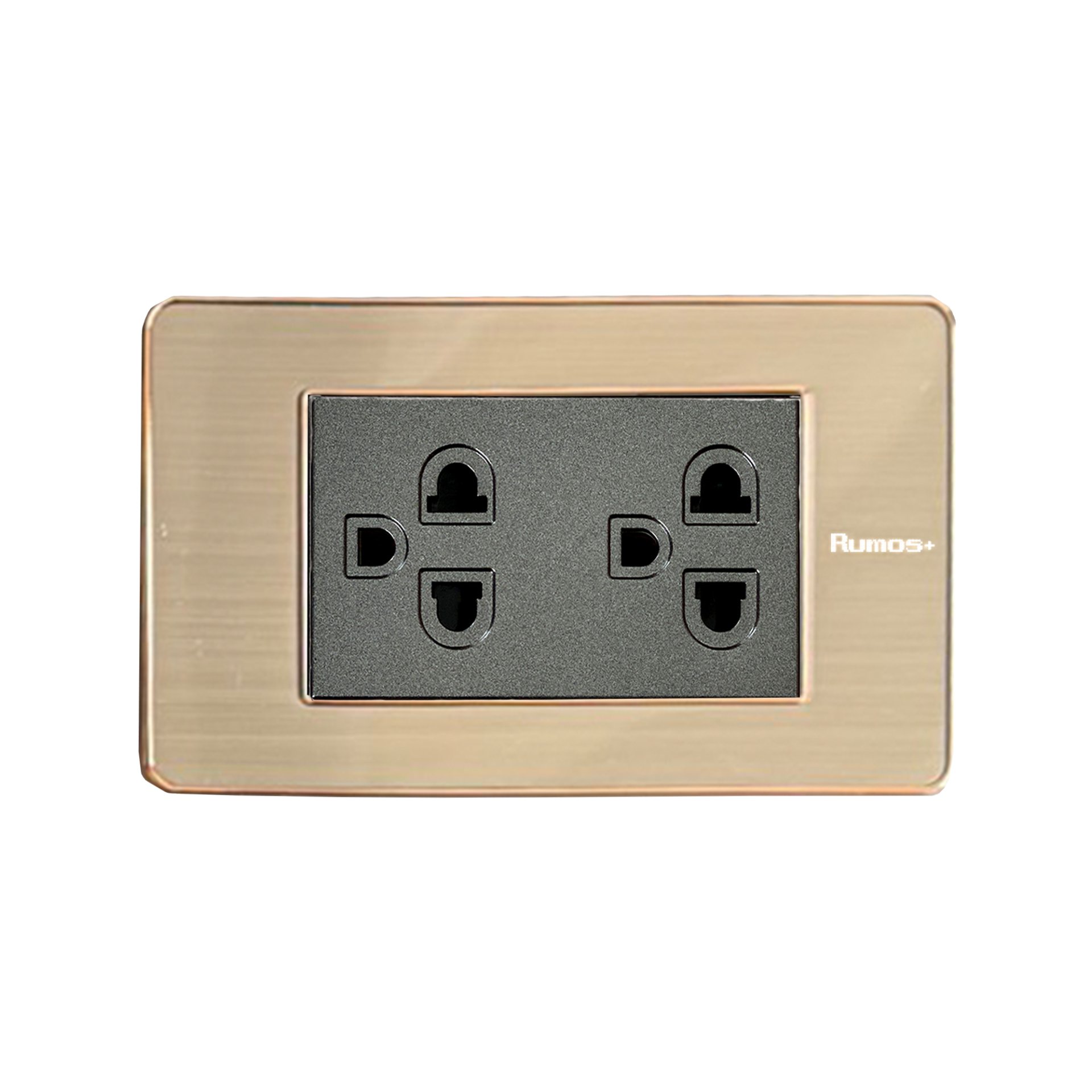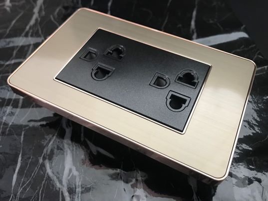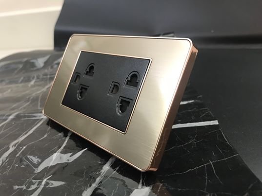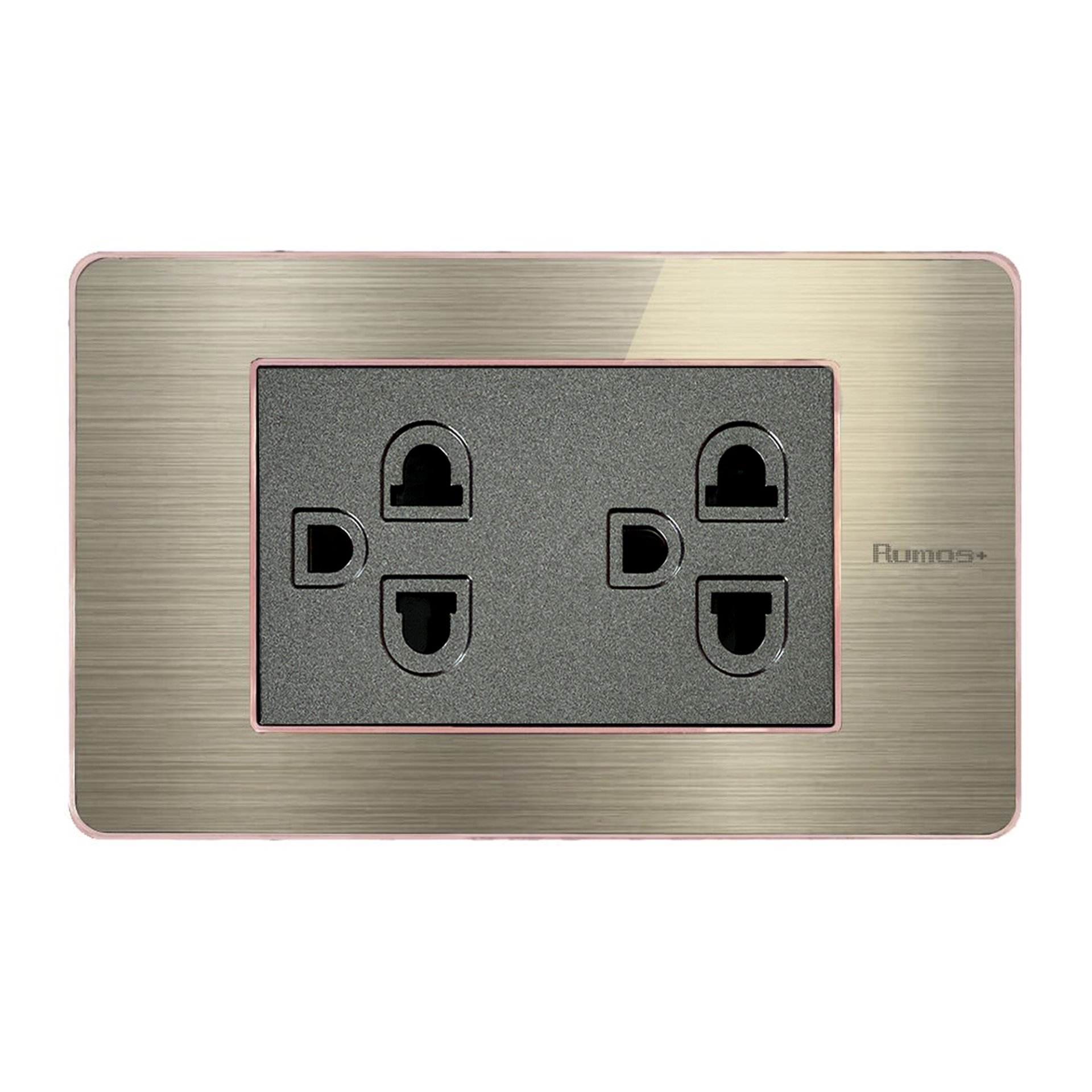 เต้าเสียบกราวน์คู่(มีม่านนิรภัย) พร้อมกรอบสีโรสโกลด์