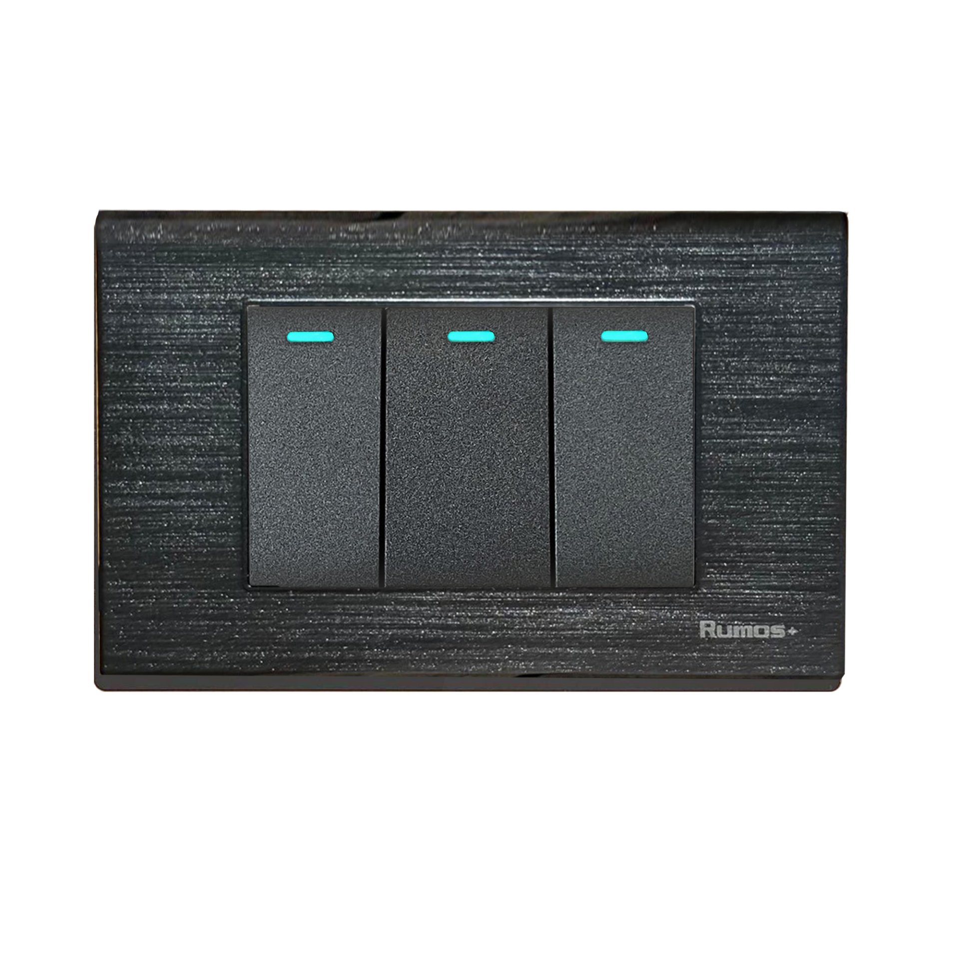 สวิตช์ไฟฟ้าแบบ 3G(ปุ่มเล็ก) สองทาง พร้อมกรอบพลาสติก HAIRLINE สีดำ