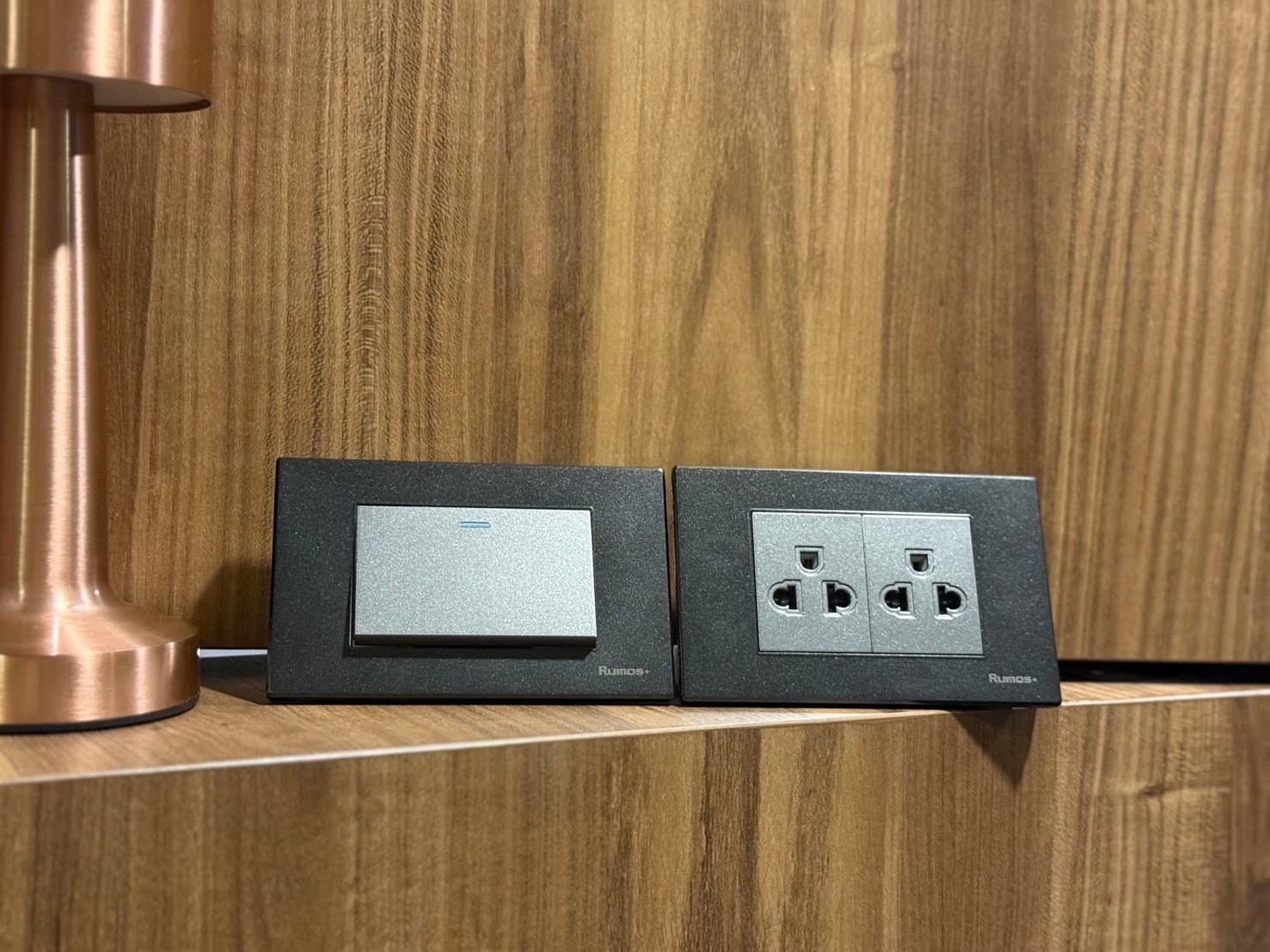สวิตช์ไฟฟ้าแบบ 1G(ปุ่มใหญ่) สองทางพร้อมกรอบพลาสติก HAIRLINE สีดำ