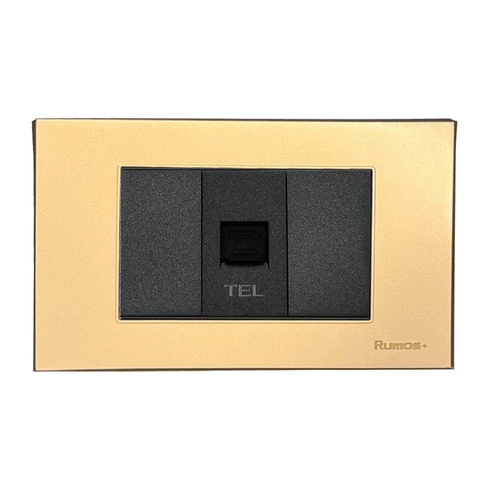 เต้าเสียบโทรศัพท์ พร้อมกรอบพลาสติก สีทอง