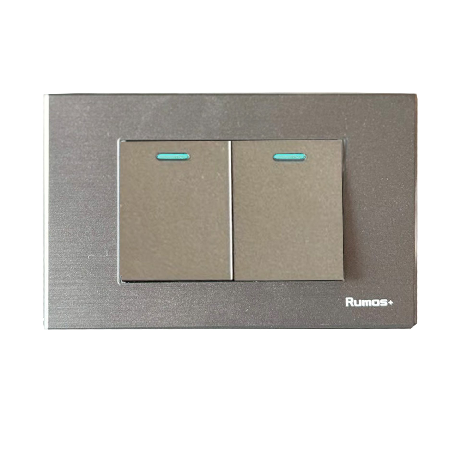 สวิตช์ไฟฟ้าแบบ 2G(ปุ่มกลาง) สองทาง พร้อมกรอบพลาสติก สีเทา