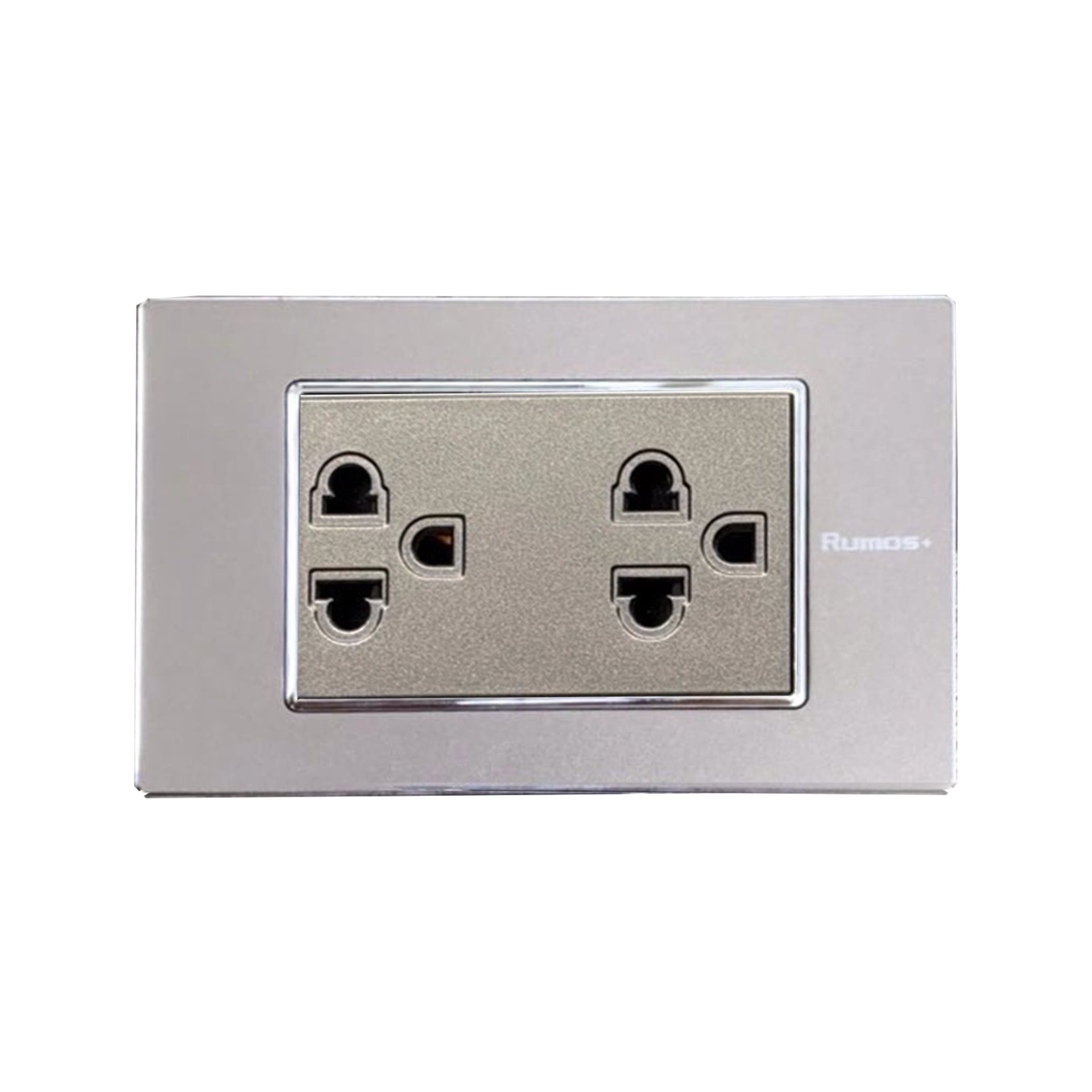 เต้าเสียบกราวน์คู่(มีม่านนิรภัย) พร้อมกรอบสแตนเลส PinkGRAY