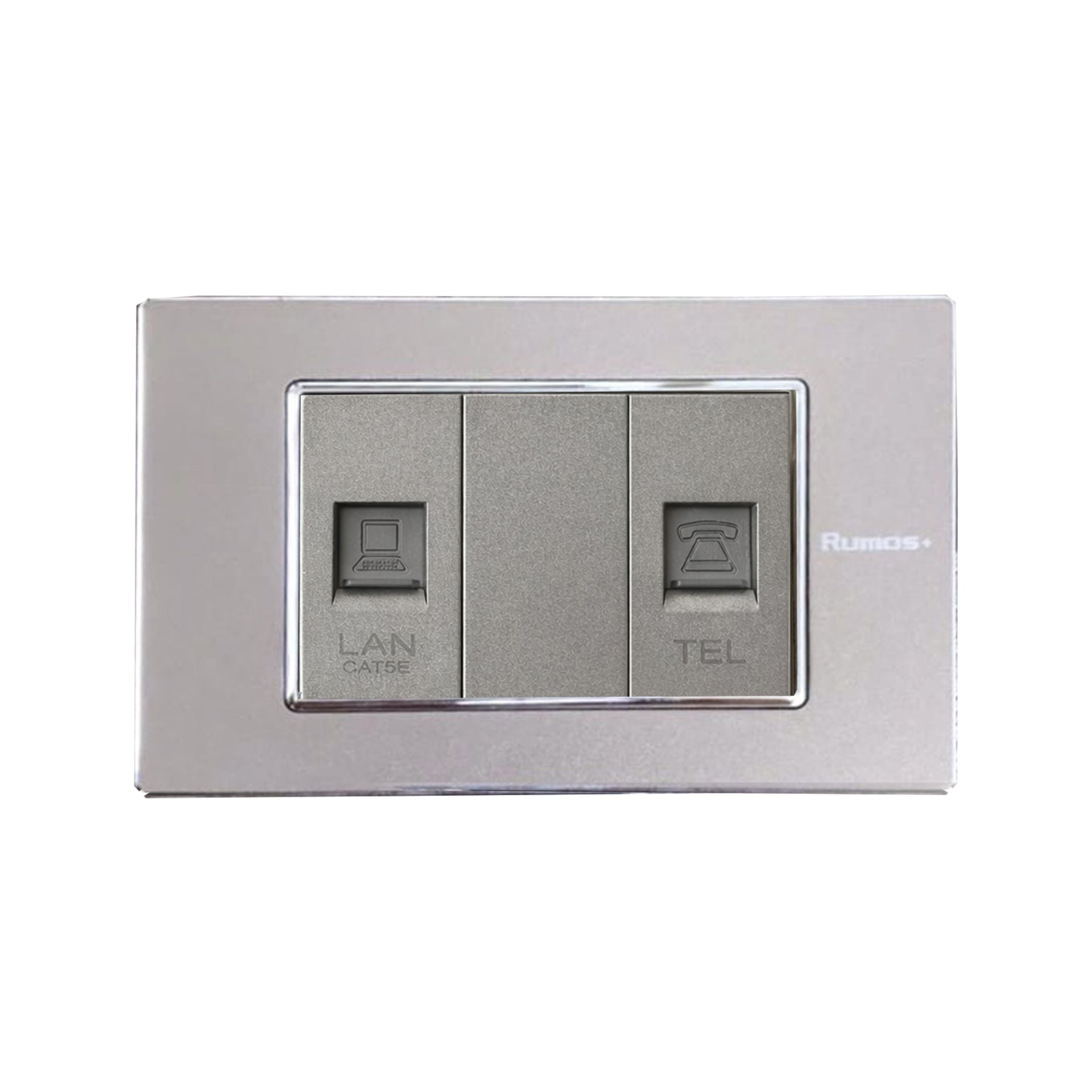 เต้าเสียบโทรศัพท์(4 สาย)+เต้าเสียบคอม(CAT5)พร้อมกรอบสแตนเลส PinkGRAY