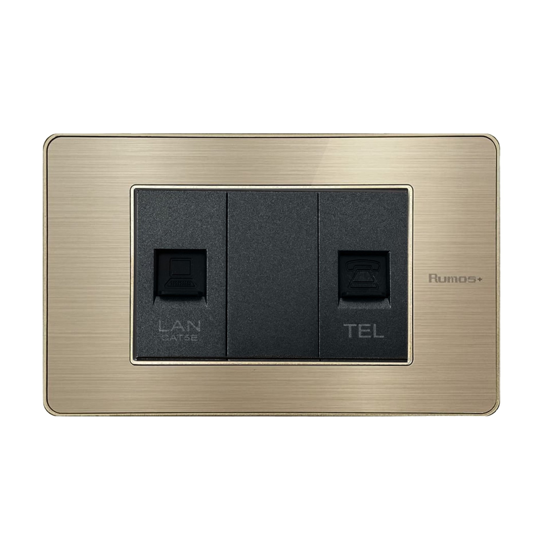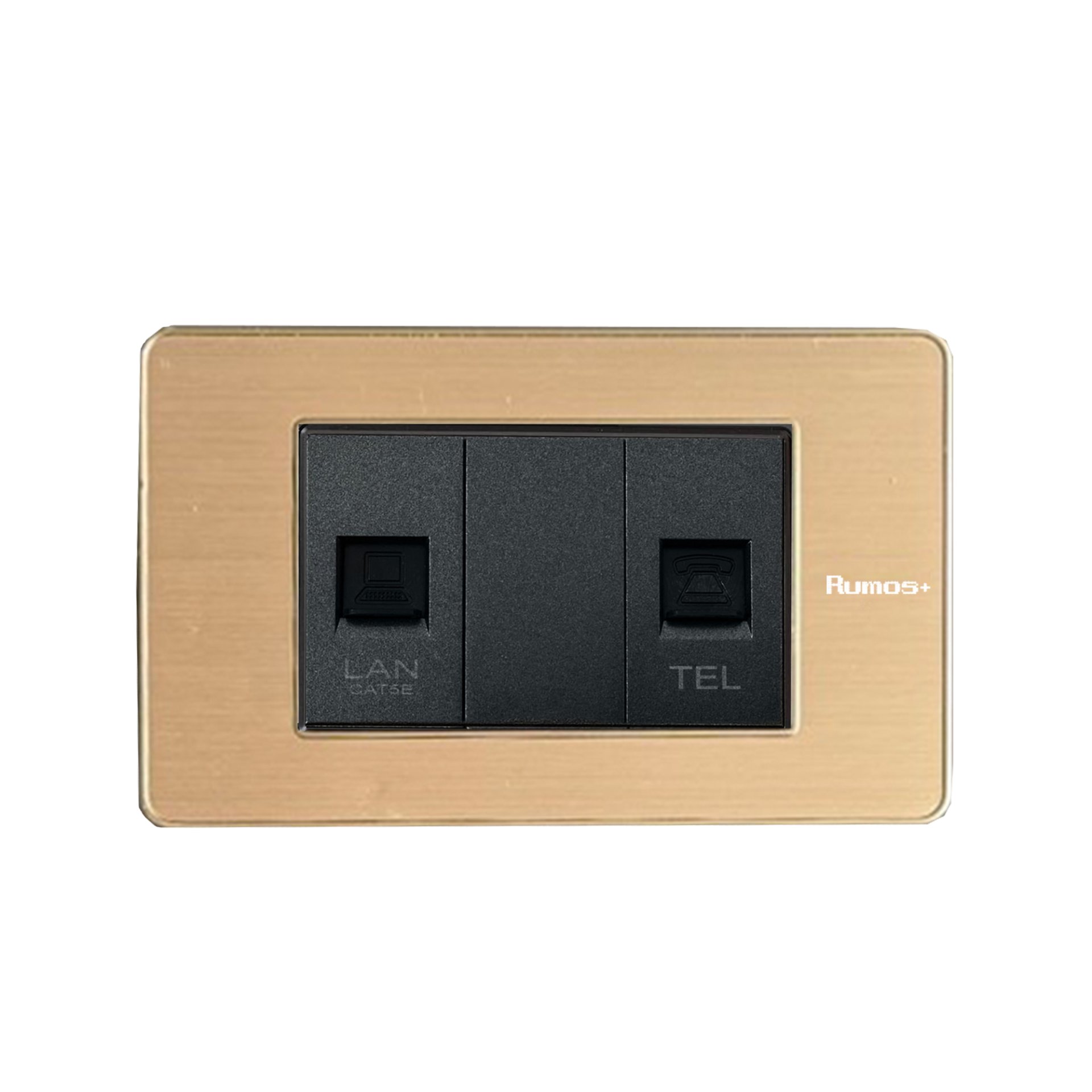 เต้าเสียบโทรศัพท์(4 สาย)+เต้าเสียบคอม(CAT5)พร้อมกรอบสีทอง